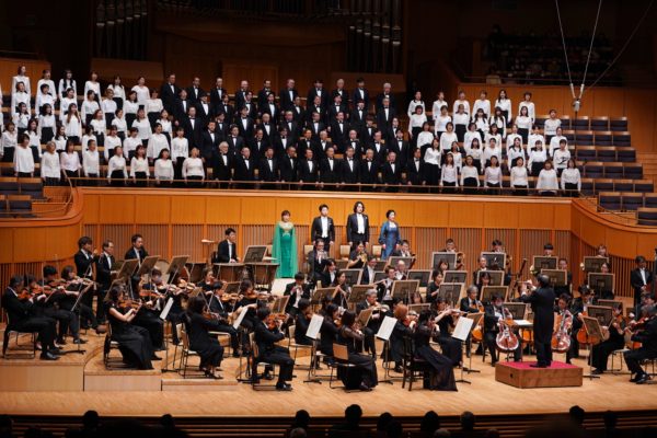 そう聴こえたのは、急遽代役での登壇となったソプラノの針生美智子の力も大きかった。彼女の決して吠えない透明な発声でここの四重唱に明確な輪郭が与えられた結果、ほんの少しのディミヌエンドでこれほどの表情を得たように思う。針生はAllegro ma non tantoの“Freude,Tochter aus Elysium”も完璧だった。841小節のh音だけがほんの少し低かったが、瑕疵はここのみ。針生には大喝采を贈りたい。