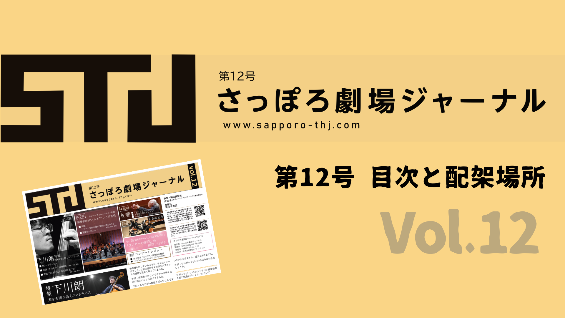 2026年4月に発行したさっぽろ劇場ジャーナル第12号の目次と配架場所をお知らせいたします。配架場所は現時点での情報のため、これからさらに増えます!